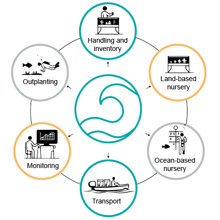 Land and Ocean-Based Coral Nurseries: Our hybrid approach integrates land- and ocean-based nurseries, ensuring seamless coral cultivation and restoration.